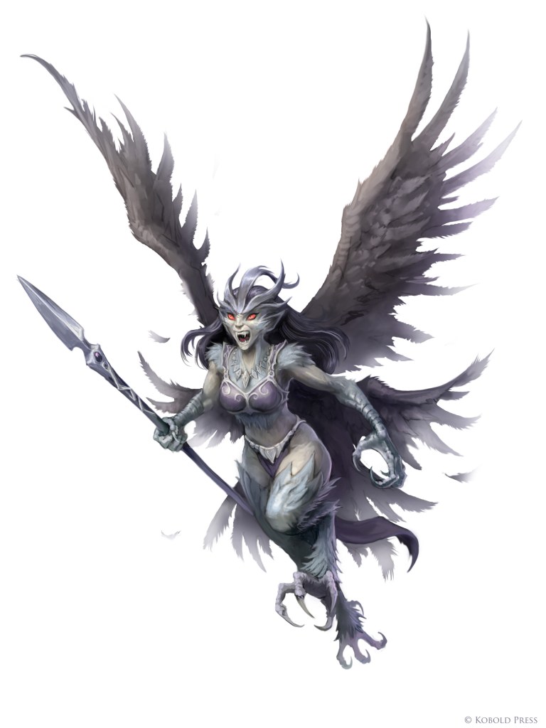 As the doors are shoved open, Bubbles falls under the spell of Kaya, the undead owl harpy in the circular room beyond, and rushes into her embrace. Fortunately, the shadow fey snaps out of it almost immediately. Zygmunt rushes to Bubbles’ aid as swarms of scarab beetles close in on the pair. Meanwhile, Penumbra at the rear of the party has come under attack from a wraith which emerged from the wall; the tiefling is drained of 21 hp life energy. Bubbles bashes the undead harpy with the pommel of her sword, incapacitating her. Bloodied, she offers to tell the adventurers everything she knows if they stop attacking. As the harpy tries to back away, Bubbles runs her through. Her secrets die with her.