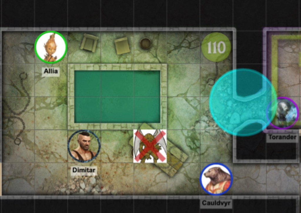 Allia’s player kicked off the 4th session with a campfire story about the origins of the alliumites as the party took a short rest in the ruins, earning herself inspiration. I got this idea from SlyFlourish’s blog – hopefully a different player or two will come up with a tale next time.