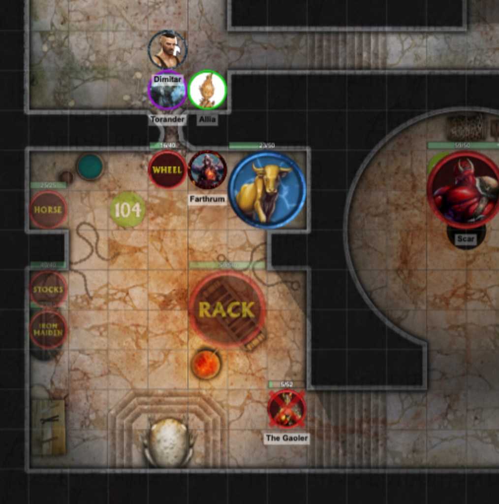 Entering the dungeon again by the previously buried staircase, they decided enough was enough and it was time to face the Gaoler and deal with him once and for all. This time, they did much better, finally killing the psychopathic torturer and destroying his animated wheel and brazen bull. Allia jemmied the brazen bull open and found a tin dog figurine of wondrous power (from Vault of Magic) inside. I don’t do it every time but I do like to reward players who search in odd places for treasure with minor loot or clues.