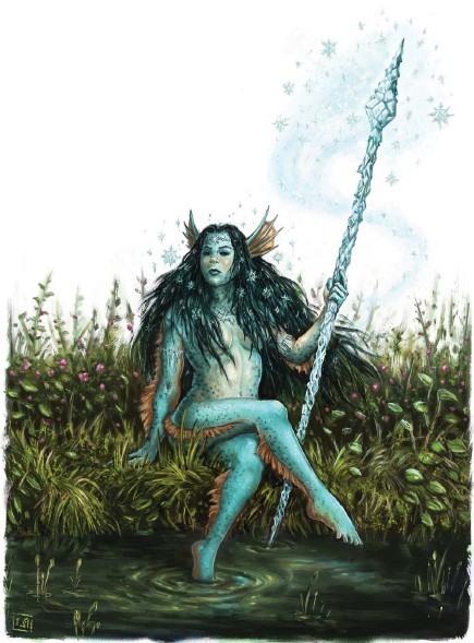 After hurtling along for some distance, the characters feel themselves slowing down, until they arrive in a marsh next to the riverbank. Here they are attacked by nixies led by Lady Syllessi. Sharden kills one of the fey, then Bolval finishes off a second before Krivinn slays Lady Syllessi. The fourth nixie flees into deep water and escapes. The characters loot the bodies, taking the fey’s aquamarine pendants and the lady’s circlet of authority. Exhausted from their trip and the battle, the adventurers rest.