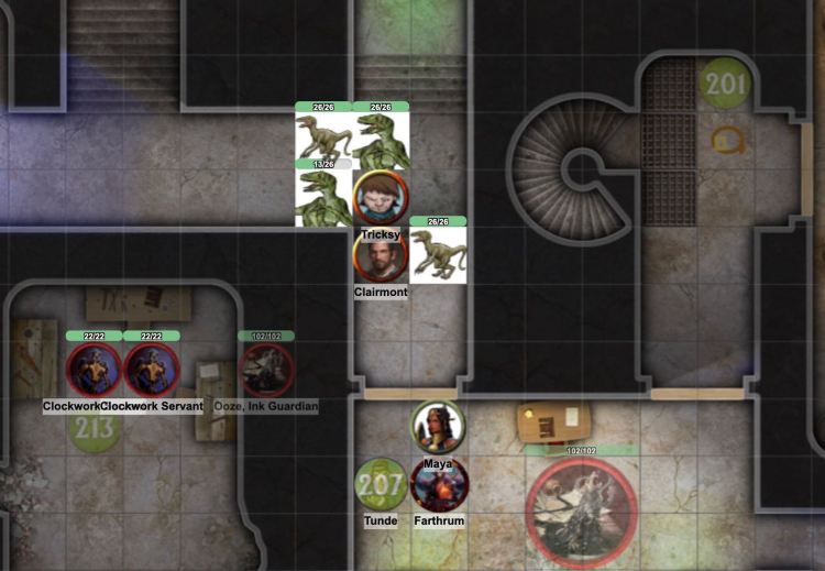 Once the deinonychuses had been dealt with and the clerics have given Tricksy some much needed healing, the group carried on towards the stairs to Level 3.