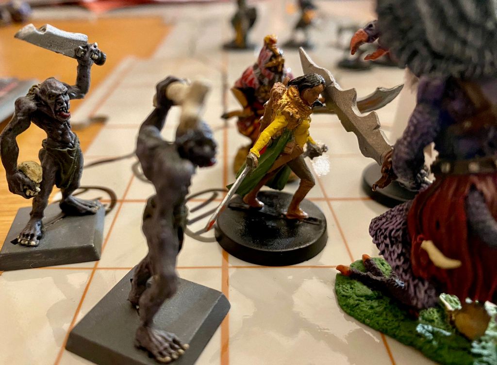 The bound celestials are frustrating opponents, ignoring Zygmunt’s fireballs and The Gears’s guiding bolts, and countering their divine spells. They fly in and out, using their Fallen Glory ability to deal radiant damage to the adventurers and knock them prone. Penumbra casts eyebite to send one to sleep and then sickens it when it wakes up, but Louthin and Bubbles can only fire ineffective arrows or ready melee attacks in case an angel flies close.