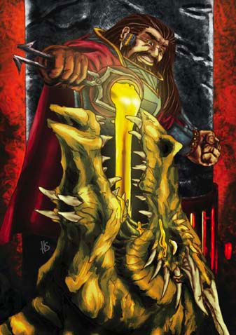 The older dwarf calls out “Bring the blessing. The ceremony will be completed!” The spined devil pulls back Vianna’s head and pries open her mouth as the Journeyman dumps molten gold down her throat. As he does this, Vianna changes into a gold dragon and bellows defiantly, blasting the older dwarf and the kobold with molten gold from her mouth, killing them both. Then, she completes her transformation, claws a hole in one of the air shafts, and leaps inside.