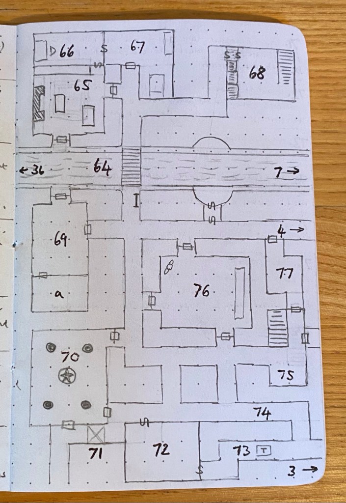 For Week 11 of #Dungeon23, I filled out the rest of the map I drew last week.