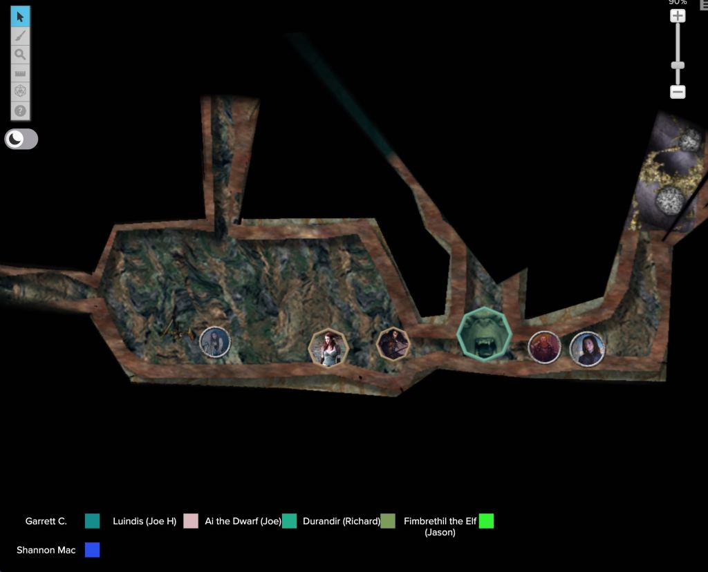 Finally, I got to try The One Ring for the first time on Sunday evening. I played a lot of MERP back in the day and always felt that the “Rolemaster Lite” rules didn’t fit that well with Tolkien, despite the cool supplements and maps produced for the game. I played Durandir, an elf of Mirkwood, on a quest to deal with some feral orcs who had been bitten by giant spiders known as the Sisters of the Purple Bite. This was the only game this weekend on Roll20 rather than just theatre of the mind, but there was a fair bit of combat involved, and the Roll20 character sheets helped with the more complex dice rolling. As well as battling orcs, two cave trolls and some goblins, we got to experience the journey and counsel rules which worked well. The game definitely captured the feel of Tolkien’s books for me and we got to meet Legolas too!