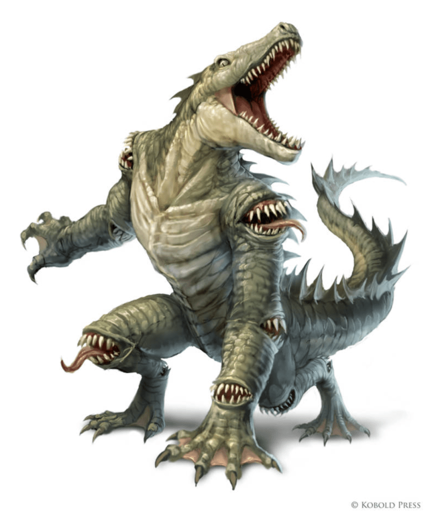 The characters have a short rest, then spend the next few hours building a raft by the Shrine of Charun on the banks of the Black River. It seems reasonably river-worthy so they travel upstream (west). After half an hour, the group is attacked by a pair of cipactli demons. Tunde is grabbed and pulled into the water to be devoured by the demon’s many mouths. Clairmont blasts the fiend with scorching rays, killing it, and Tunde is able to get back on the raft but suffers the effects of the necrotoxic water. Maya also falls in, but the characters are able to slay the second demon and continue upstream.